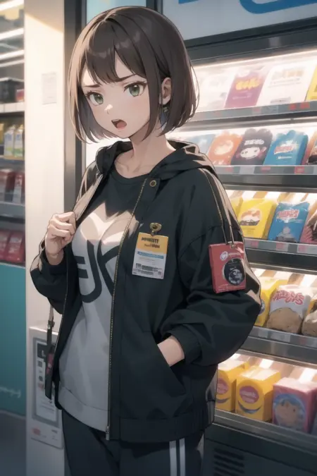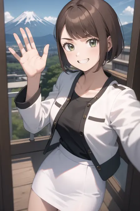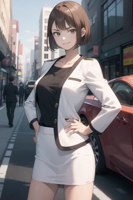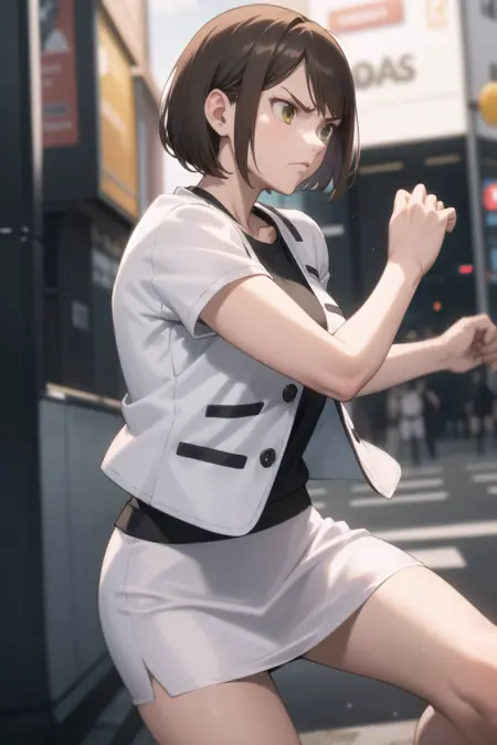 옷: white jacket, t-shirt, black undershirt, white skirt