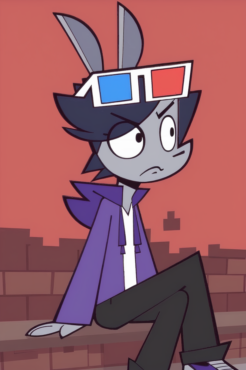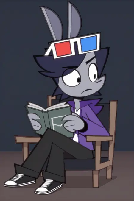 役立つキーワード: 1boy, furry, フーディー, 白いシャツ, 頭に3Dメガネ, パンツ, 靴