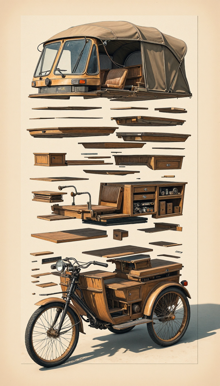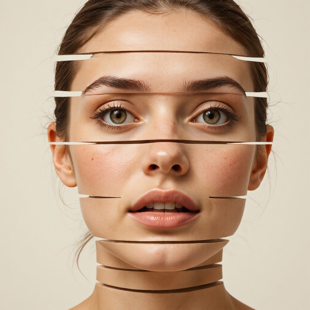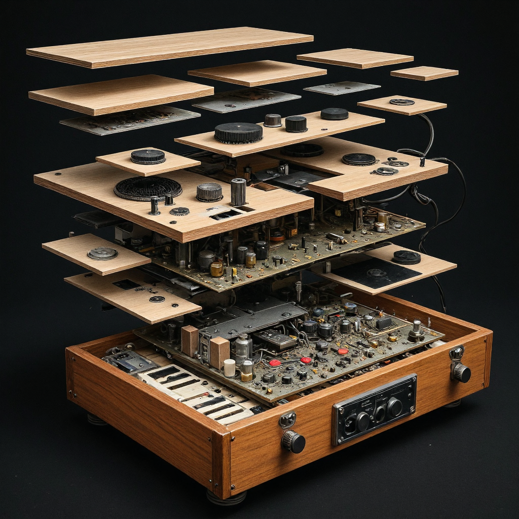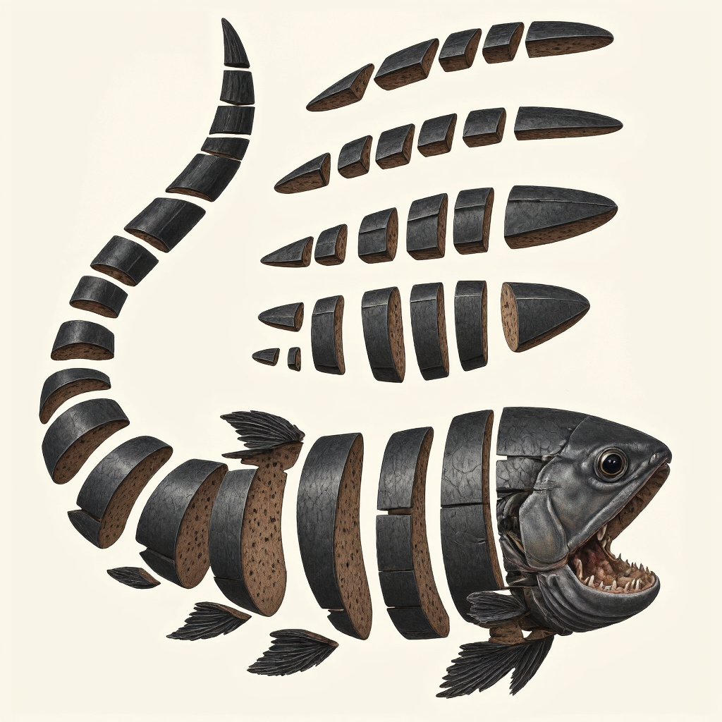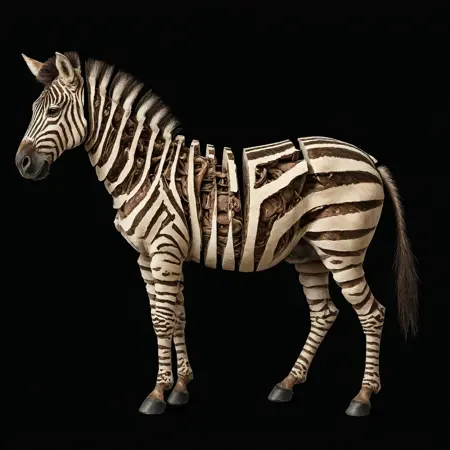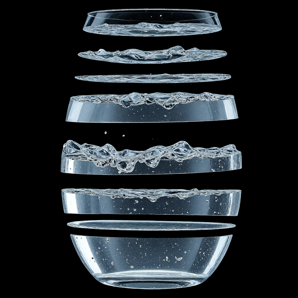 a photographic illustration of [OBJECT] sliced into many parts, exploded view, split segments with a white clean background