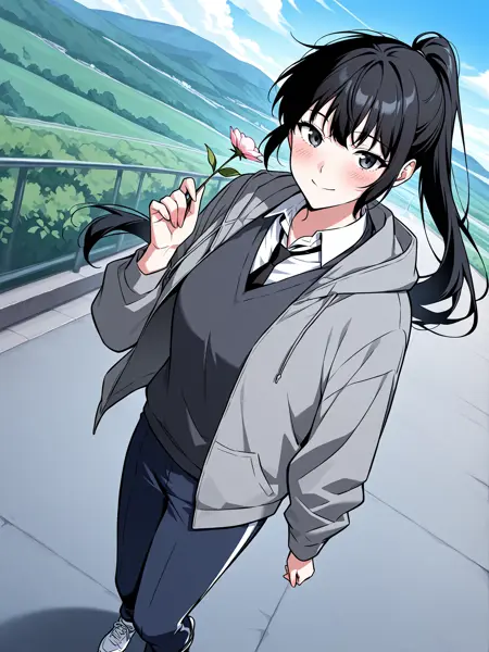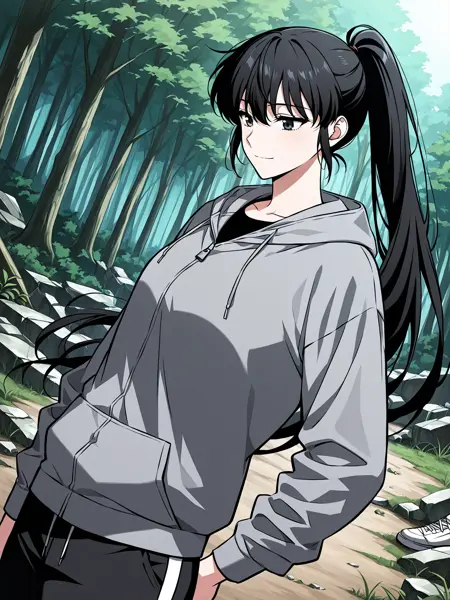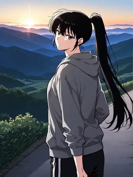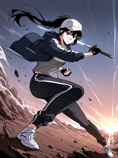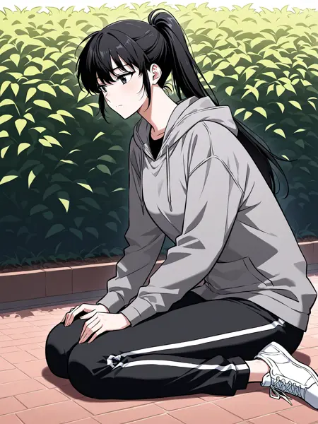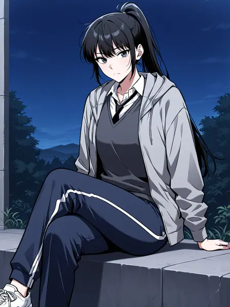 | 训练词汇 | 1girl, solo, long hair, black hair, tied hair, high ponytail, black eyes, messy bangs, 已复制! gray hoodie, school uniform, white shirt, black tie, dark gray sweater vest, navy blue track pants, white stripe pants, white sneakers, casual and uniform mix, layered clothing,已复制! white baseball cap, white and navy jacket, gray t-shirt, black track pants, white stripe pants, black fingerless gloves, white sneakers, sporty outfit,已复制! gray hoodie, black t shirt, black track pants, white stripe pants, black shoulder strap, white sneakers, modern clothing, 已复制! |