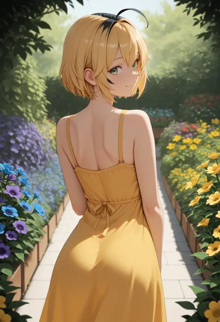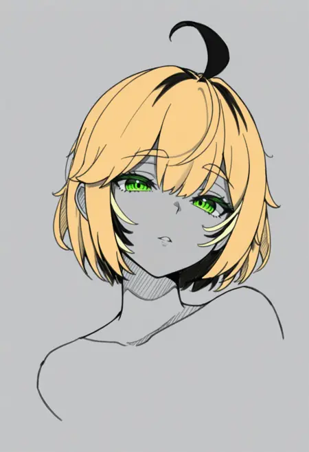 D00by, 绿色眼睛, 多色头发, 金色头发, 黑色头发, 短发, ahoge, 尾巴