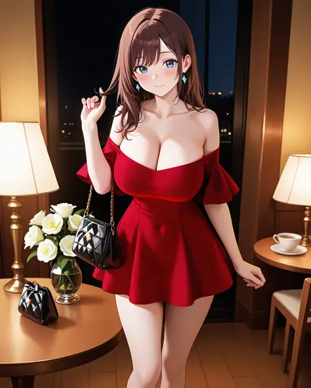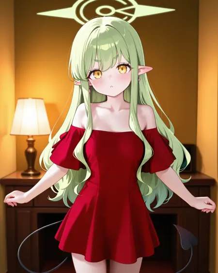 (왜 높은 슬릿인가요? red high slit dress를 추가하지 않아도 약 50% 확률로 높은 슬릿이 생성되기 때문에, 그냥 추가하는 것이 낫습니다. 재미있는 사실로, 이 드레스의 원본 소재는 무릎 길이의 드레스였지만, 높은 슬릿이 불안정하게 생성되므로 결국 짧은 드레스로 변경했습니다.)