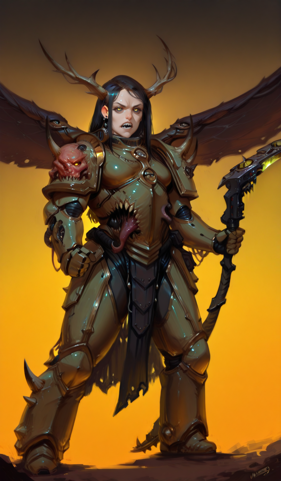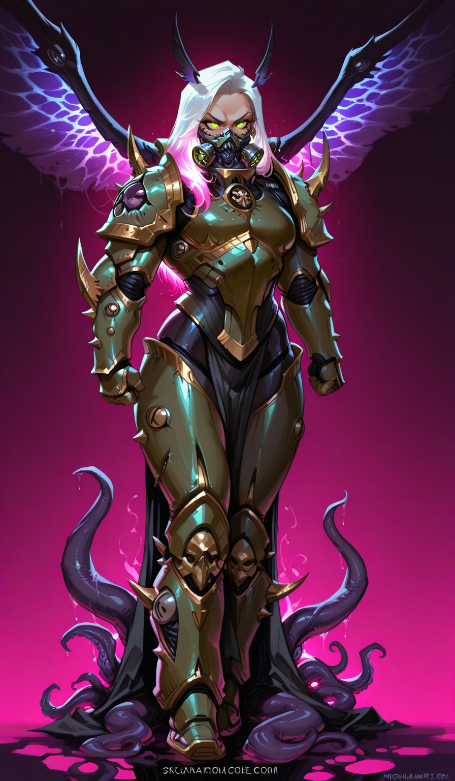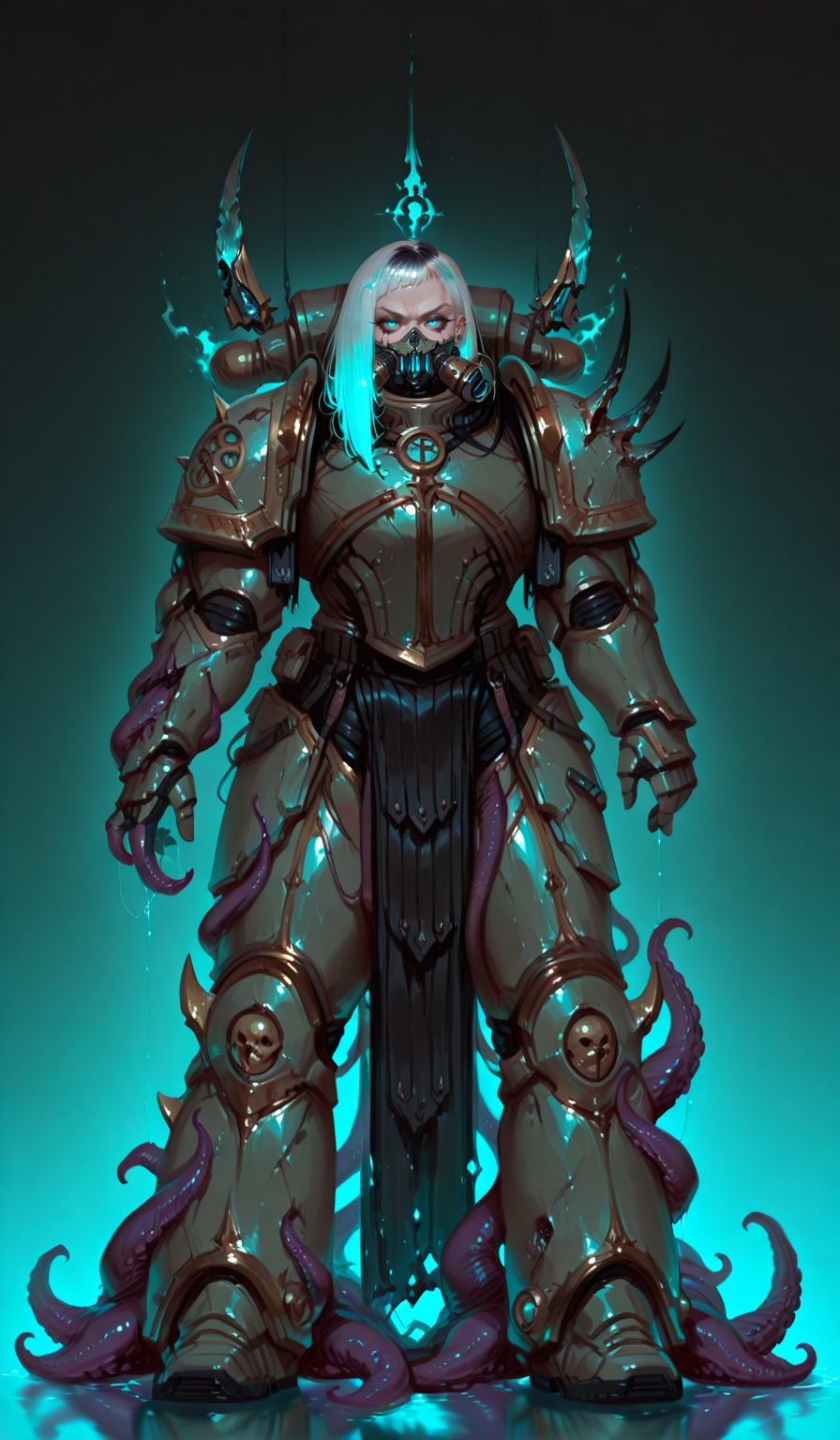 • tentacles on armor, corrupted, rusted armor, damaged armor, wings, respirator,