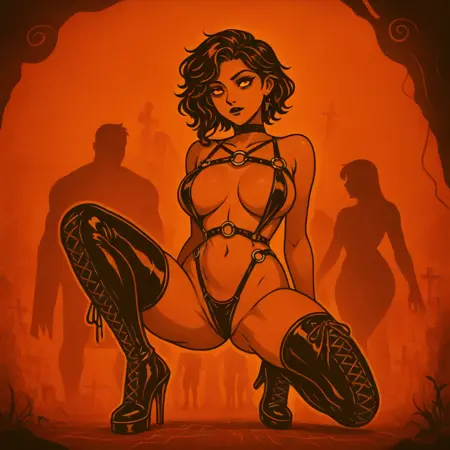 Horror Comic: A dark fantasy horror illustration in the style of 90s comic books and vintage PC game art. Uses heavy black linework, gritty textures, The texture resembles aged ink or etched print on rough paper. That featues: