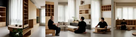 공간 장면의 이름, 가구의 이름, 재질을 기다리세요.