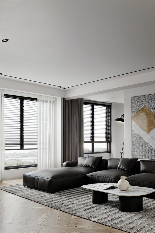 라벨 프롬프트 단어: 거실, 부엌, 전기 박스, 창문, 커튼 등 실내 장면 프롬프트 단어 포함