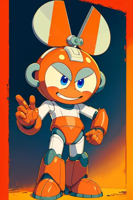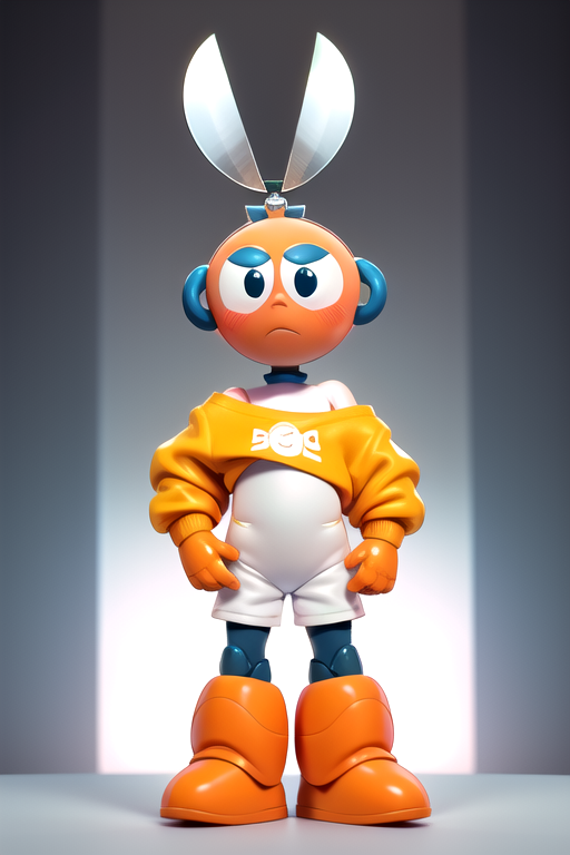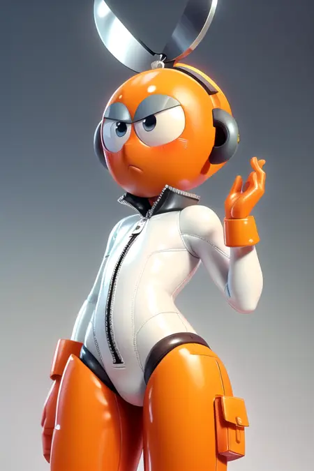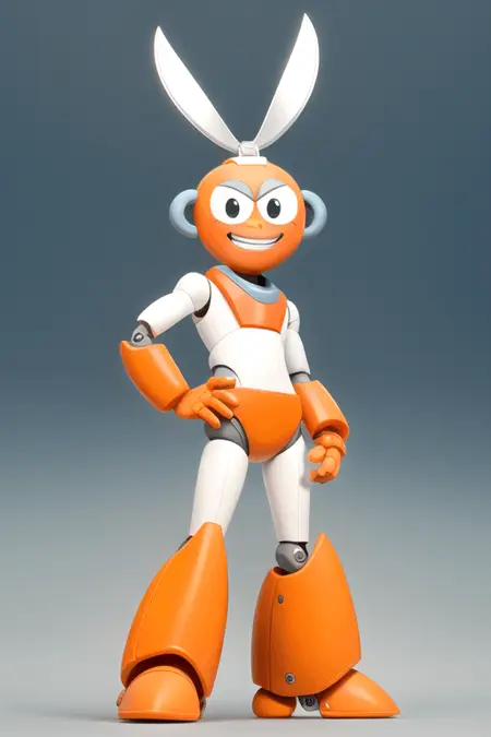 - 코 없음/noseless, 가위, 주황색 부츠, 주황장갑, 로봇, 로봇 관절