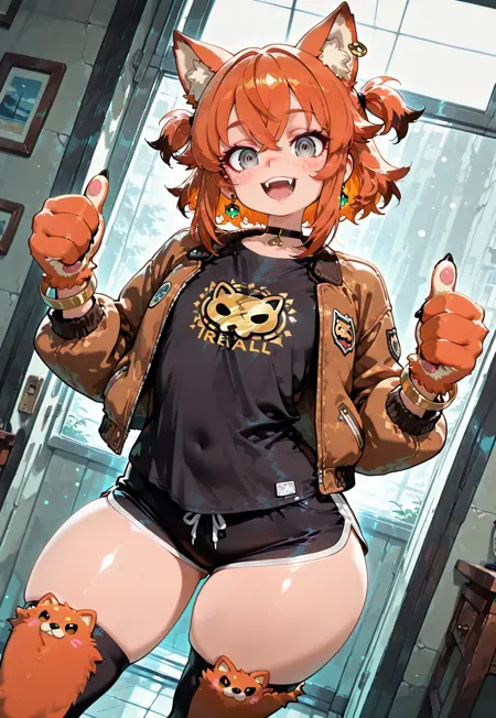 • カオス的かわいさ ディテール:ふわふわの尾に舌を伸ばす炎、稲妻のように切り裂くような眉、そして「あなた、やってみる?」という笑顔。