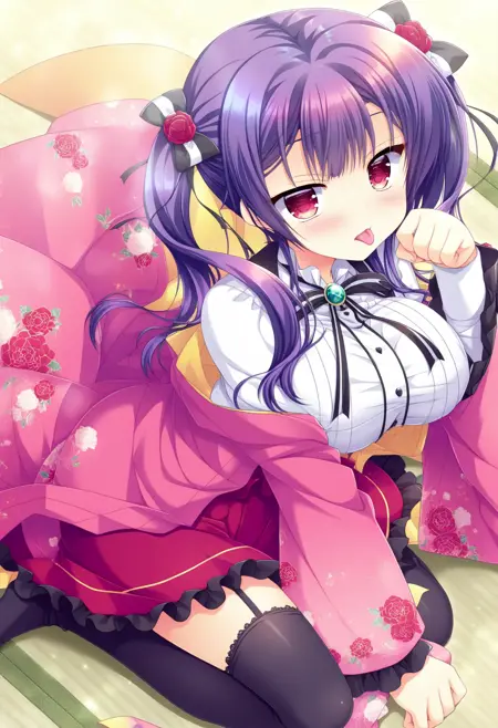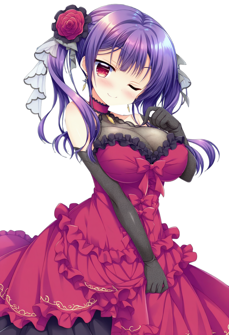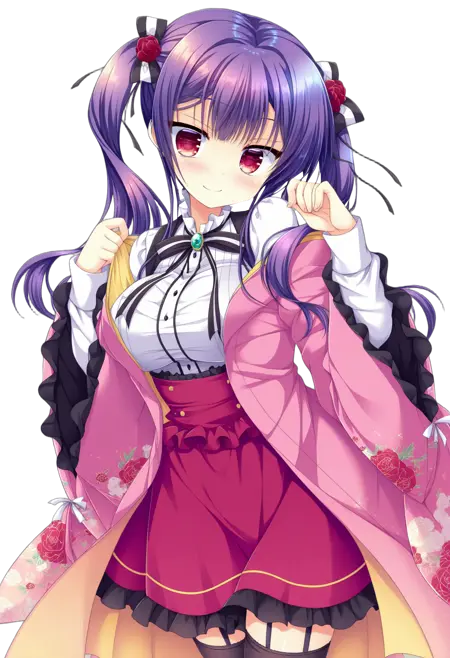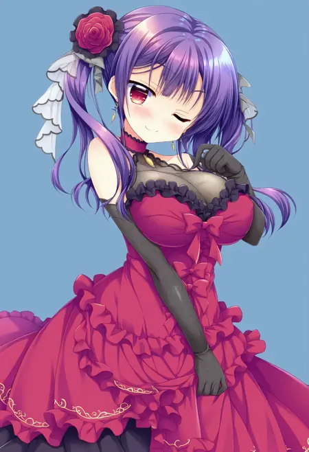 触发词: c-sasa、长发、紫色头发、红眼、双马尾、发饰、红玫瑰、发花、耳环,