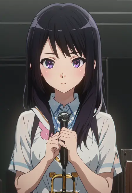 触发词为 kousaka_reina_soundeuphonium,精简标签为 black_hair, long_hair, purple_eyes。当某些特征(例如发色)有时不够稳定时,您可以在提示词中加入这些标签。
