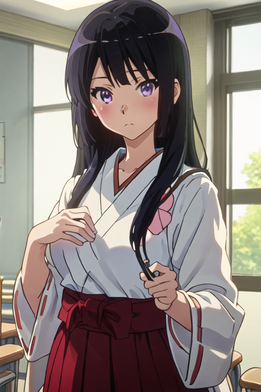 - The pruned character tags are black hair, long hair, purple eyes. You can add them into prompts when core features (e.g. hair color) of character is not so stable.