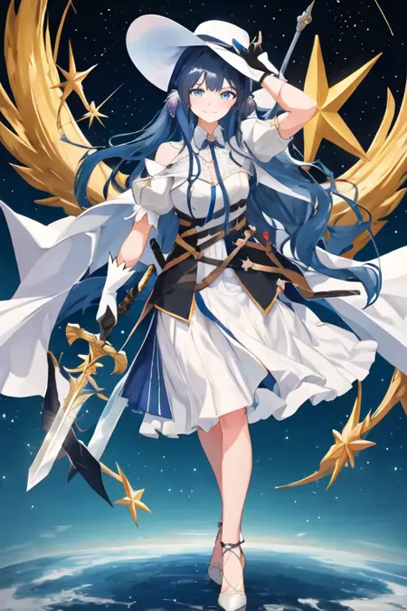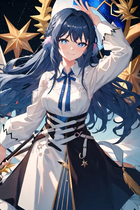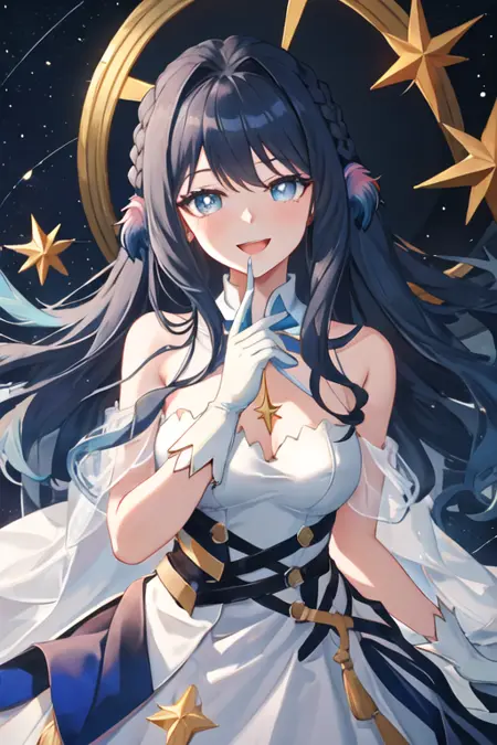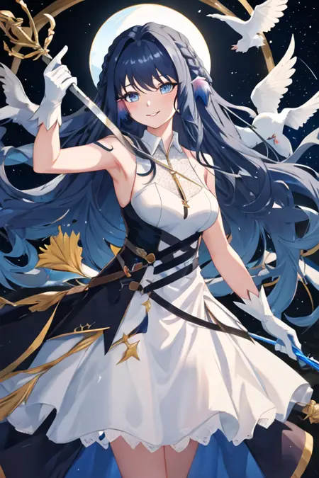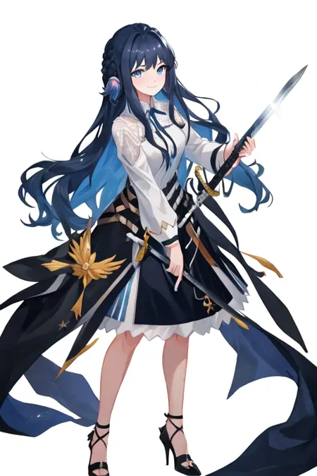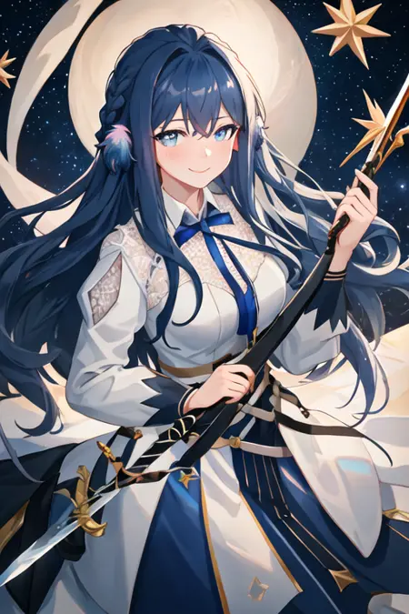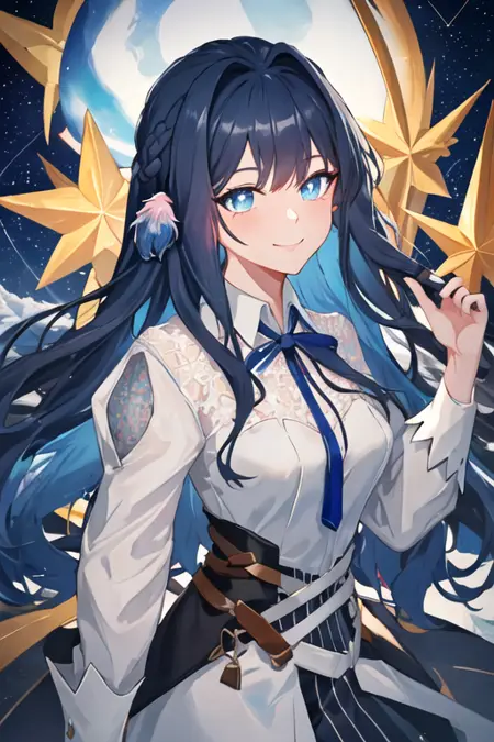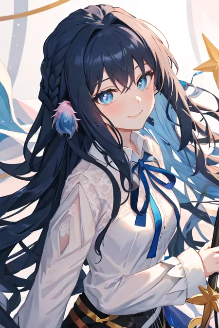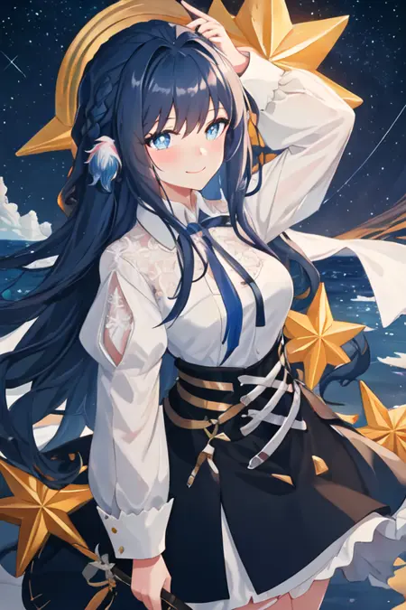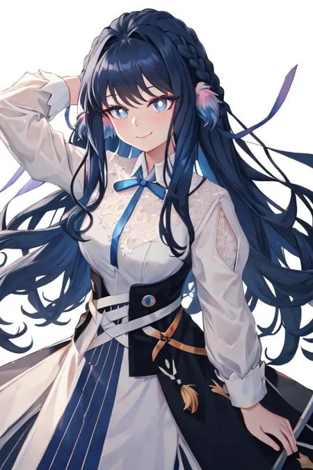 - The pruned character tags are blue hair, long hair, blue eyes, bright pupils, breasts, hair intakes, white pupils. You can add them into prompts when core features (e.g. hair color) of character is not so stable.