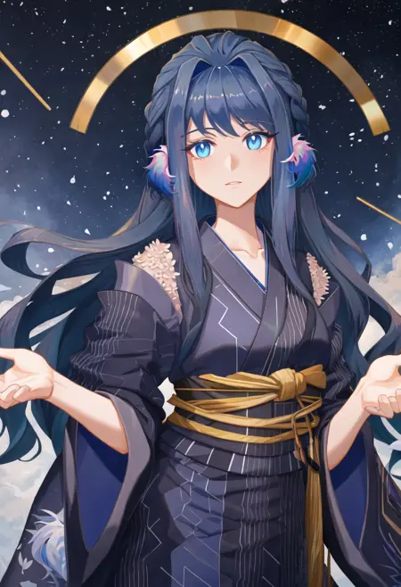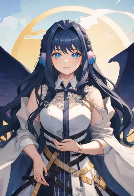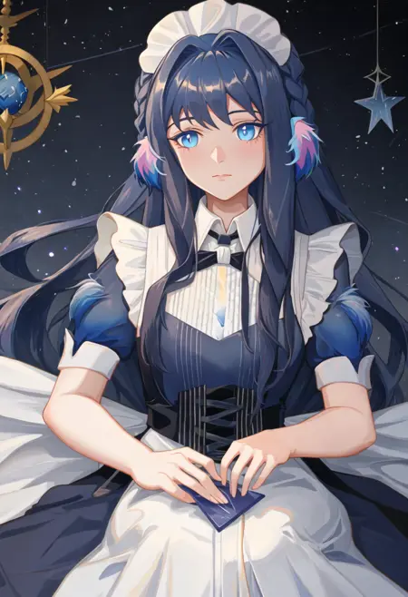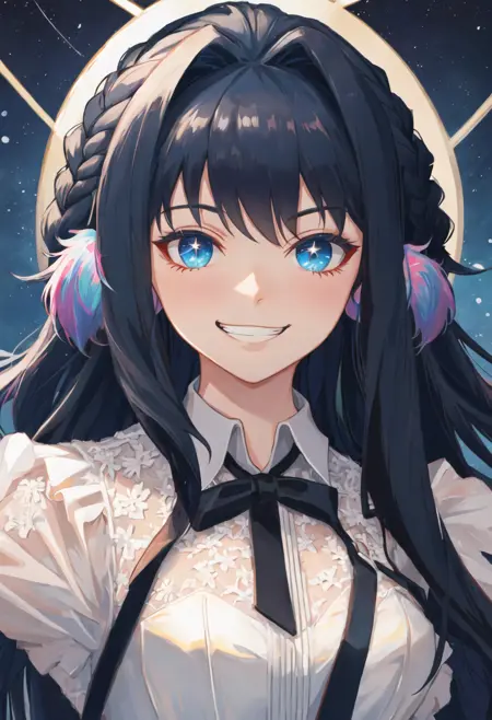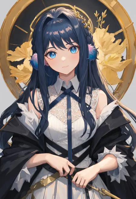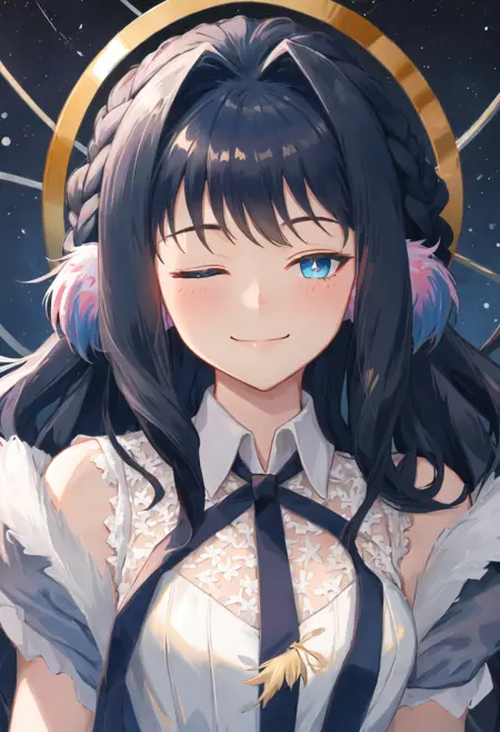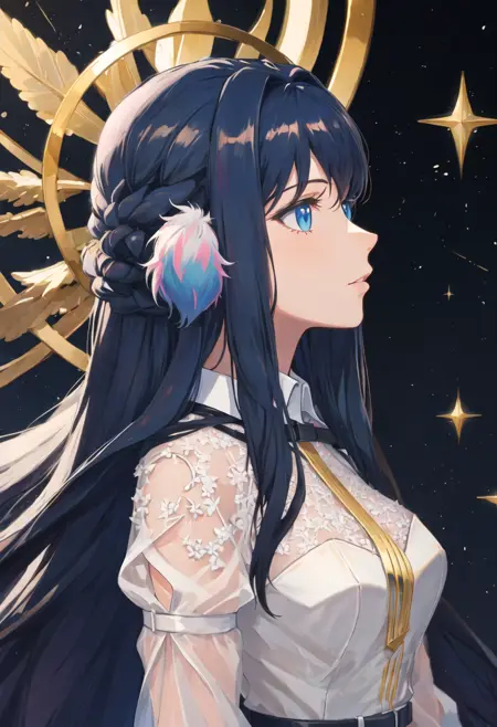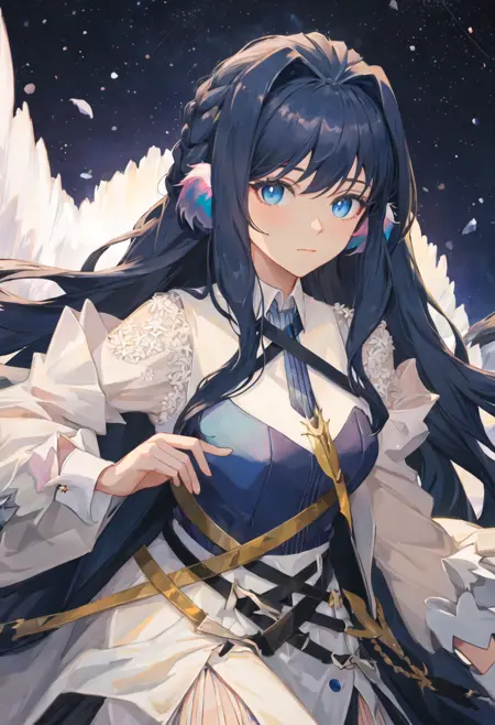 • The pruned character tags are blue hair, long hair, blue eyes, bright pupils, breasts, hair intakes, white pupils. You can add them into prompts when core features (e.g. hair color) of character is not so stable.