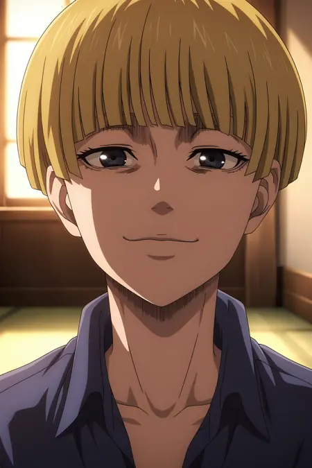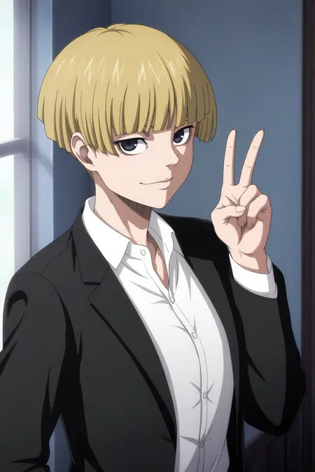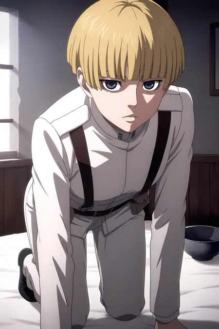 叶莲娜、金发、深蓝色眼睛、短发、碗形发型、齐刘海