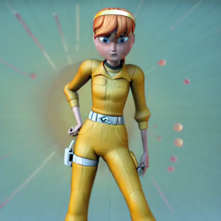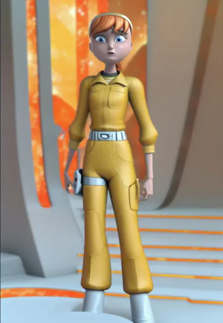 1girl, teen, orange hair, blue eyes, ponytail, freckles, yellow headband,
