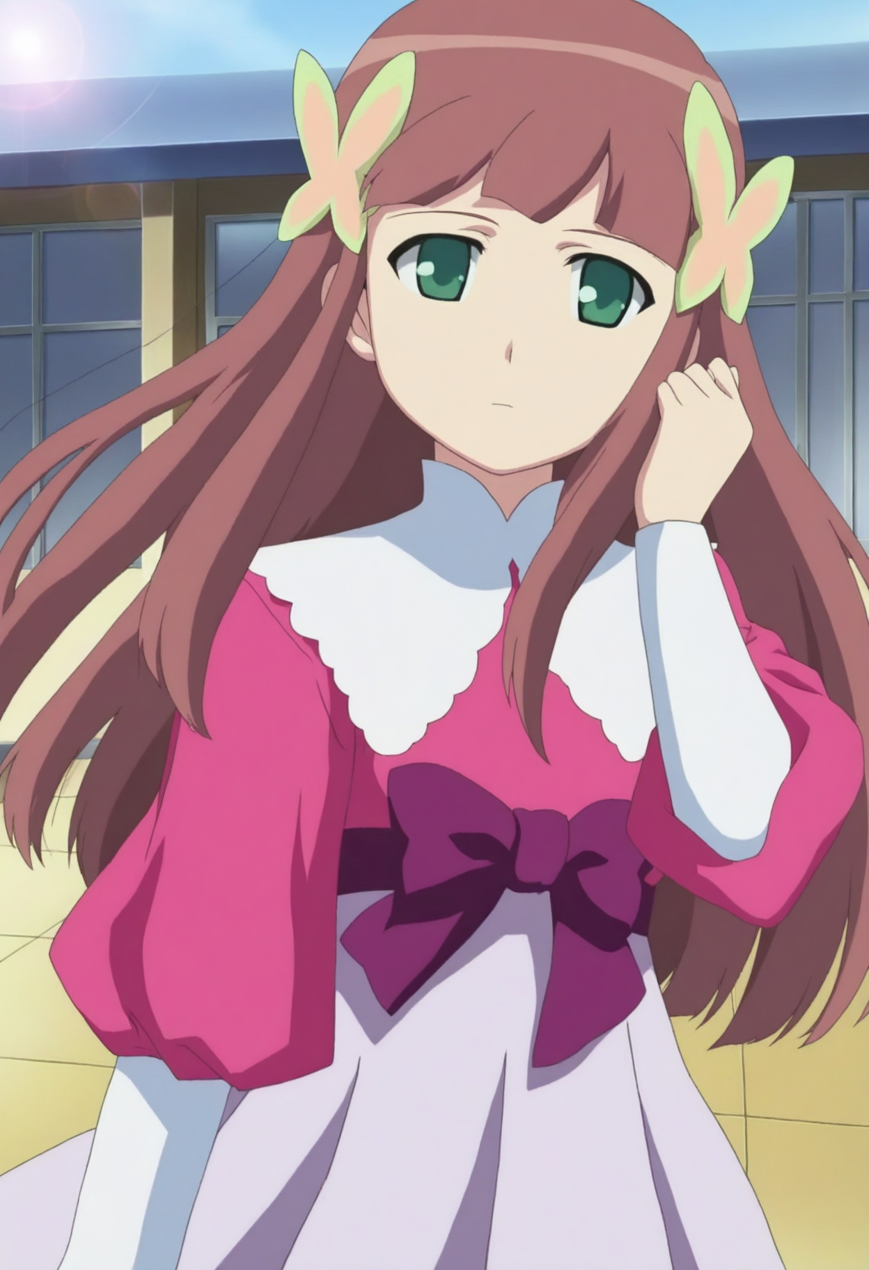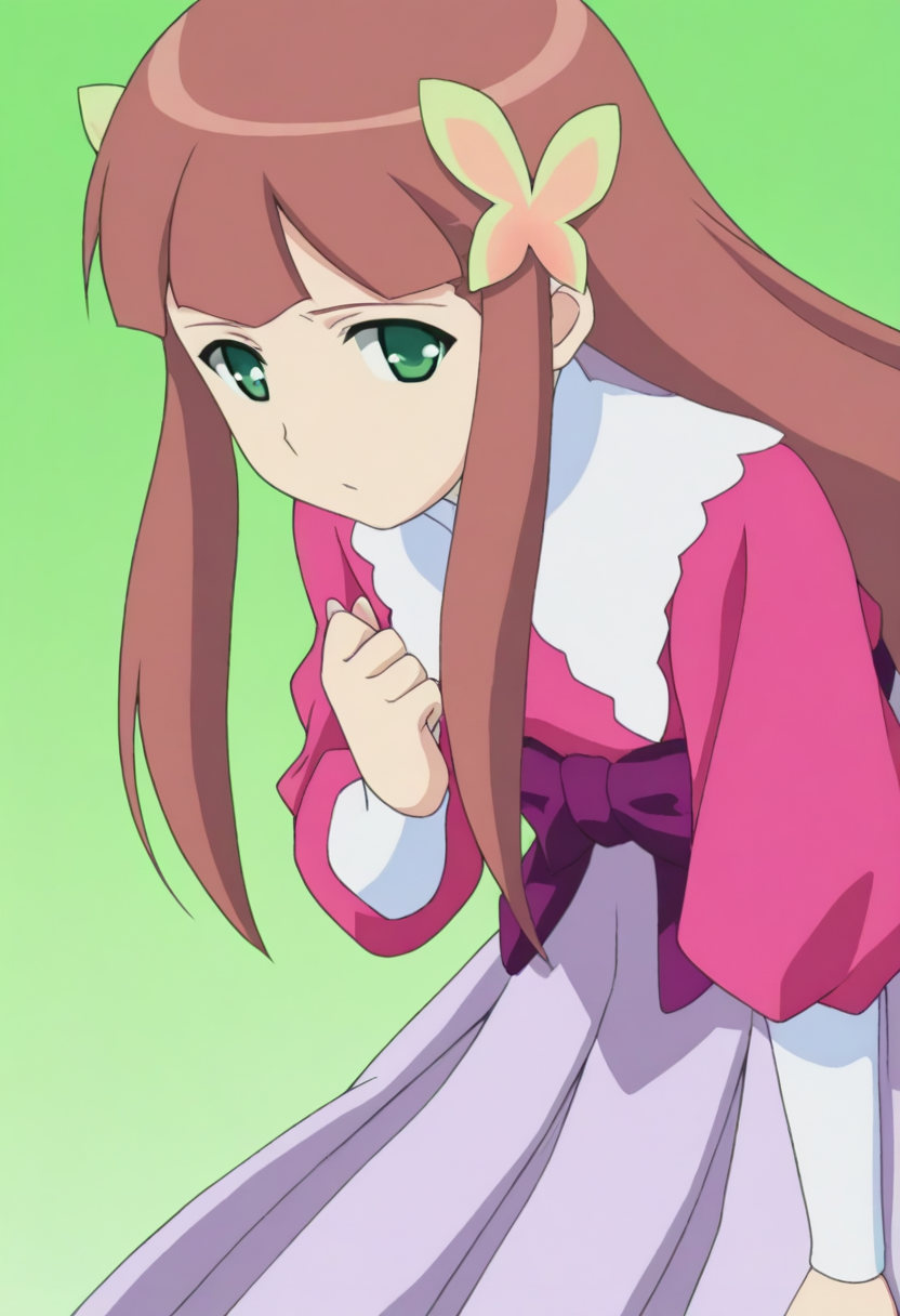 トリガーワード: c-iris、長い髪、茶色の髪、緑の目、髪飾り、