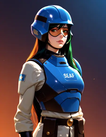 管理された民主主義の核心、あなたのわいふを含めて、皆で守る必要がある。このLoRAを使えば、わいふに基本的なSEAF制服セットを装備させ、超地球を専制的な勢力から守ることができます