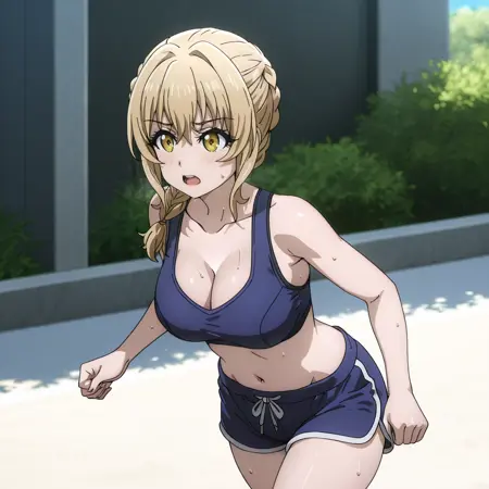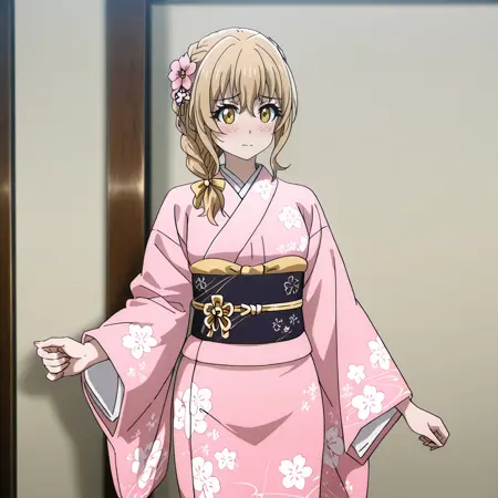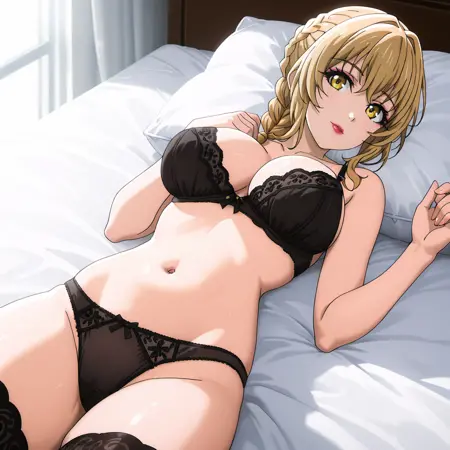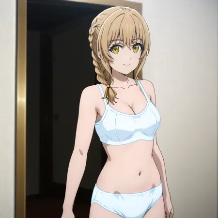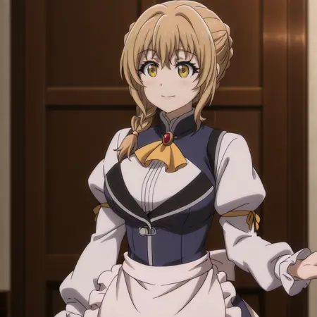 - トリガー: GuideGirl, 1girl, braid, blonde hair, yellow eyes, long sleeves, black skirt, puffy sleeves, ascot, vest, cowboy shot