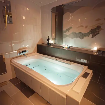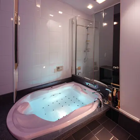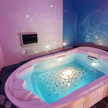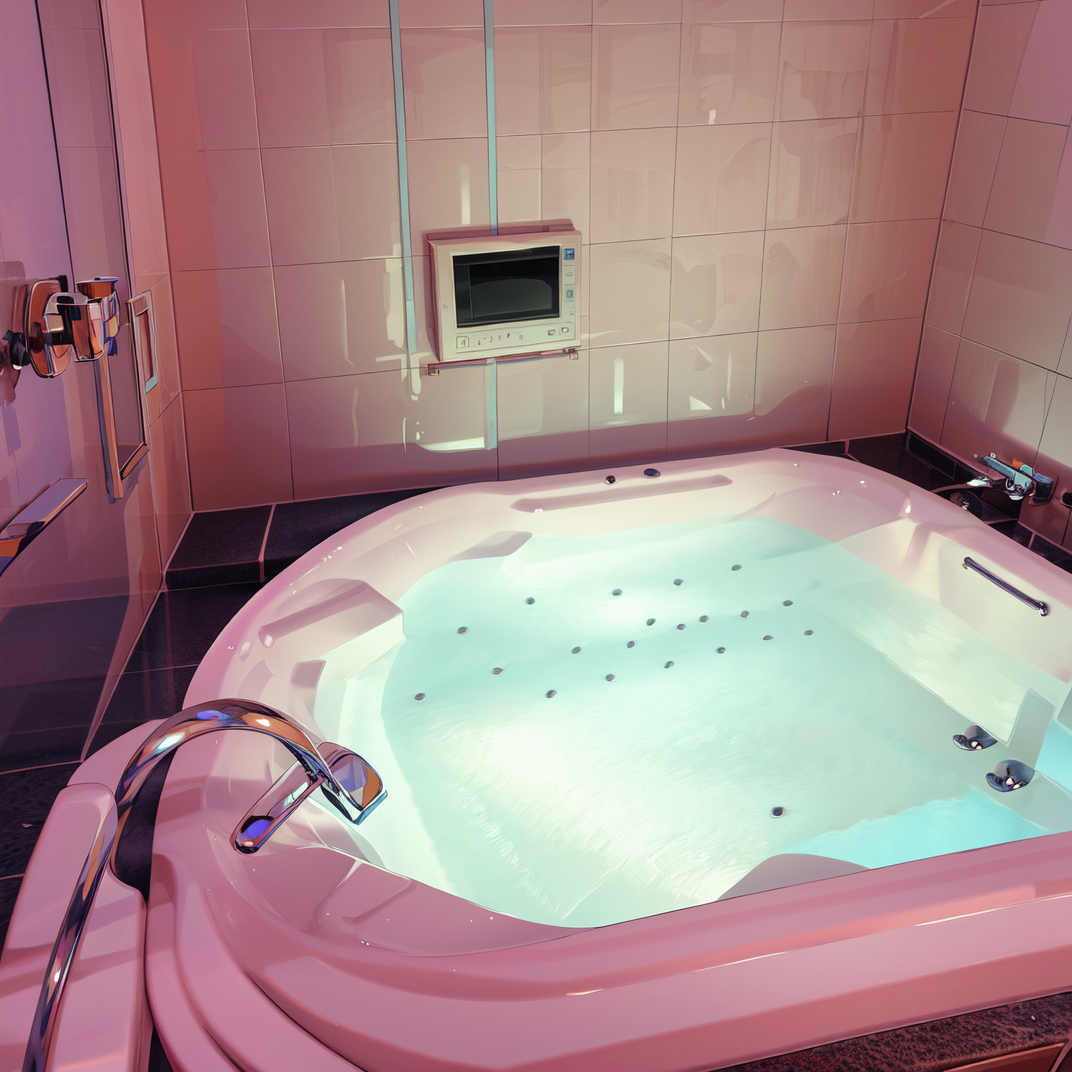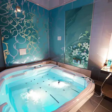 ラブホテルのお部屋LoRAは作ってある(/model/150389/love-hotel-sd15)、ラブホテルが並ぶ路地の風景LoRAも作った(/model/149891/scenery-of-love-hotel-district-sd15)、丸くて大きい回転するレトロなベッドのLoRAも作った(/model/158758/retro-love-hotel-sd15)、日本の一戸建てのお風呂場LoRAも作った(/model/27140/modern-ofuro-in-japanese-houses)…でもラブホテルのお風呂場はまだなかったので、作りました。