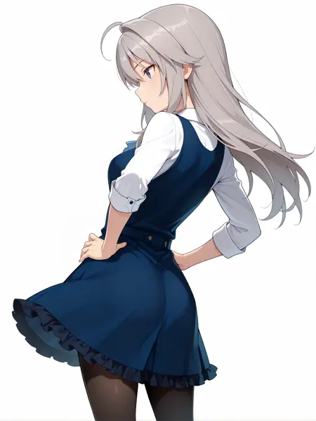 服装(阿玛女制服):amajyo, blue dress, blue skirt, frills, black_pantyhose, brown loafers