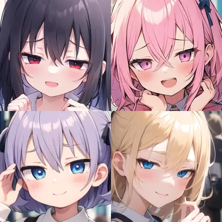 可同时使用 Type1 与 Type2,或与 HuggingFace 上的 Eye Collection 系列 结合,自定义眼睛形状。若同时使用多个眼部 LoRA,请将每个权重减半(例如 0.5 ~ 0.75)。