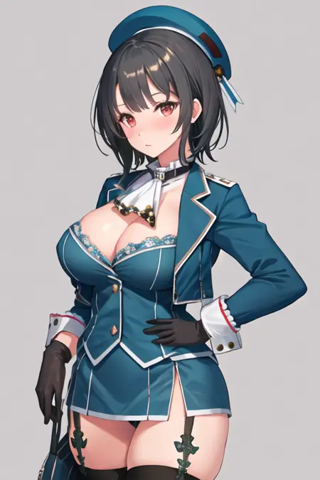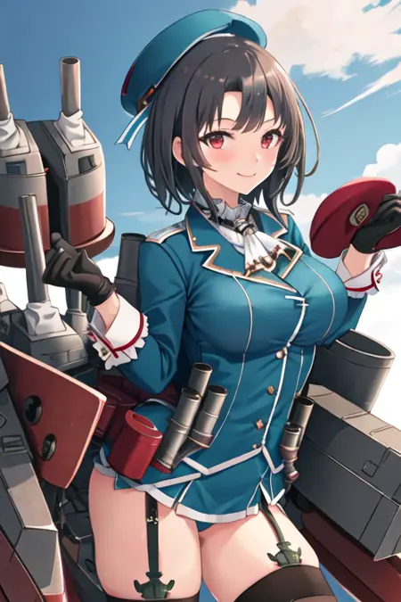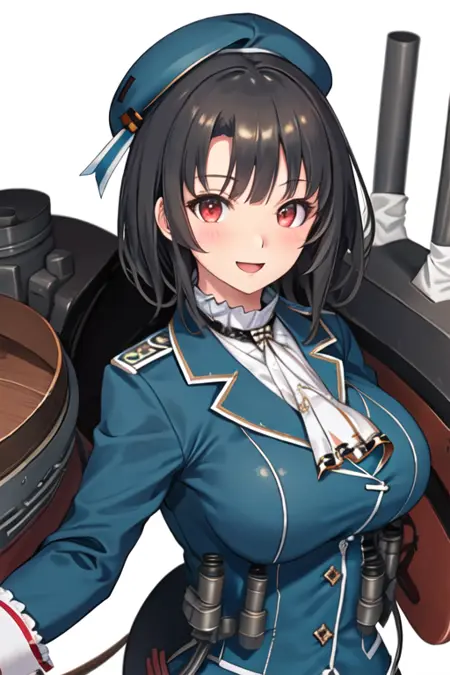 触发词为 takao_kantaicollection,推荐标签为:best quality, masterpiece, highres, solo, {takao_kantaicollection:1.15}, black_hair, short_hair, red_eyes, breasts, hat, large_breasts, beret, military, blush。