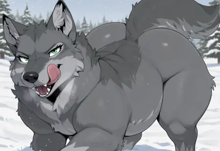 より良い結果を得るために「wolf, grey wolf, green eyes, quadruped, feral」を追加してください