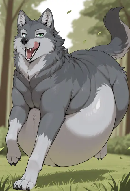 より良い結果を得るために「wolf, grey wolf, green eyes, quadruped, feral」を追加してください