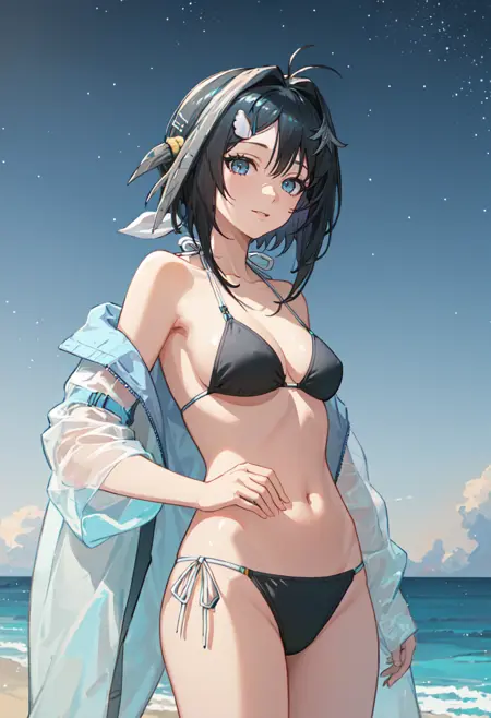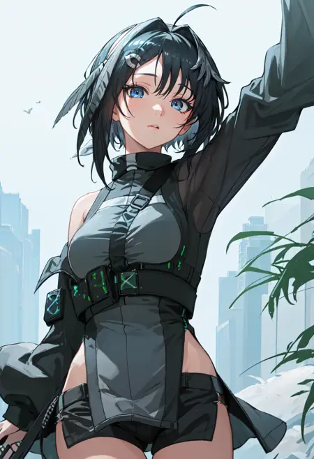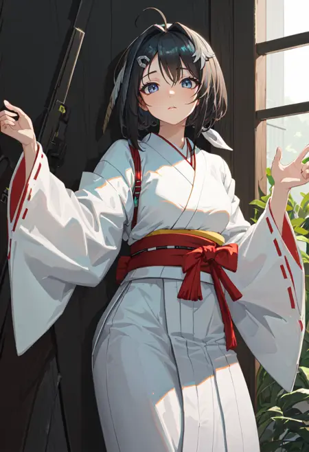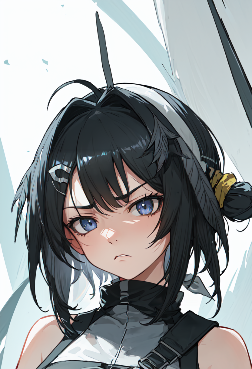 - 削減されたキャラクタータグは、黒髪、短髪、胸、髪飾り、ahoge、ヘアクリップ、中程度の胸、黒目、髪の流れ、羽状の髪です。キャラクターの主要な特徴(例:髪の色)が安定しない場合、これらのタグをプロンプトに追加できます。