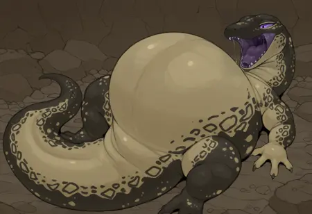 Perseus (Percy) is one of Fidchellvore's OCs, he's a feral monitor lizard drawn in Vore situations