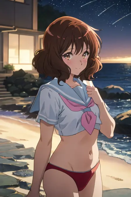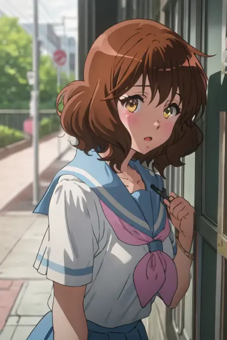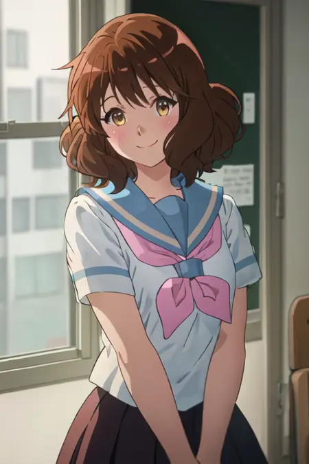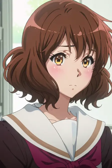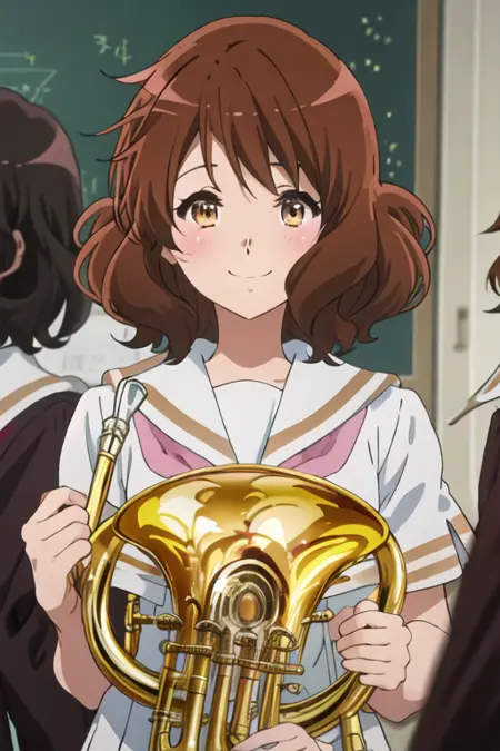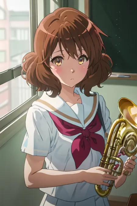 The trigger word is oumae_kumiko_soundeuphonium, and the pruned tags are brown_hair, short_hair, brown_eyes. When some features (e.g. hair color) are not so stable at some times, you can add these them into your prompt.
