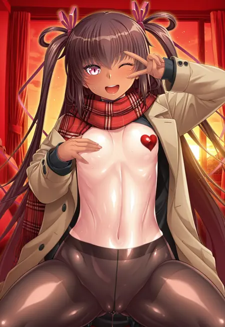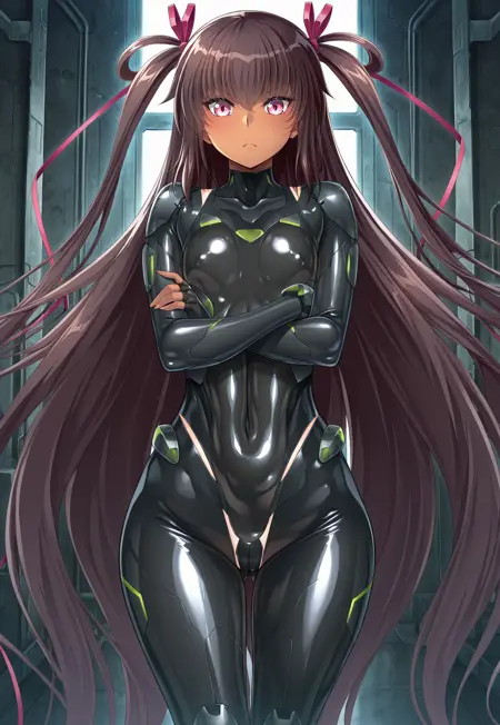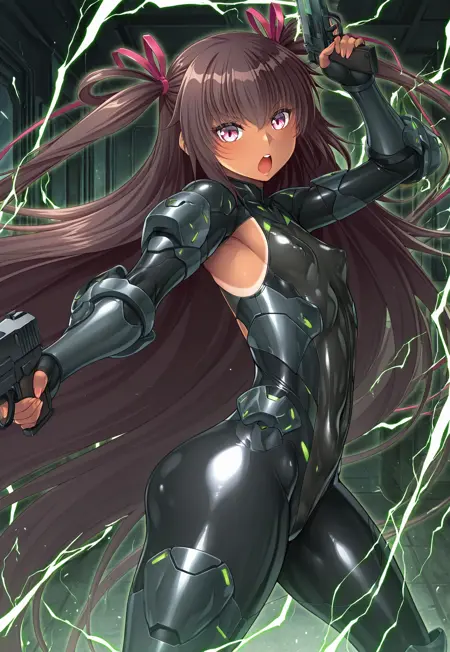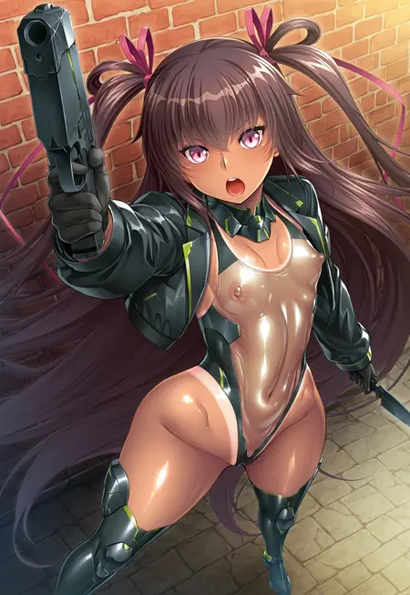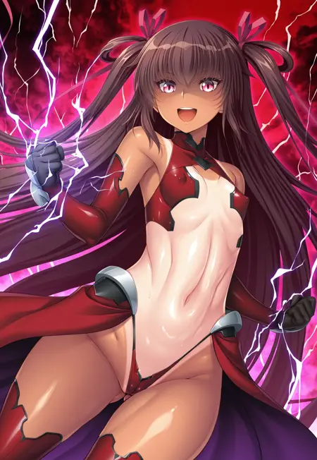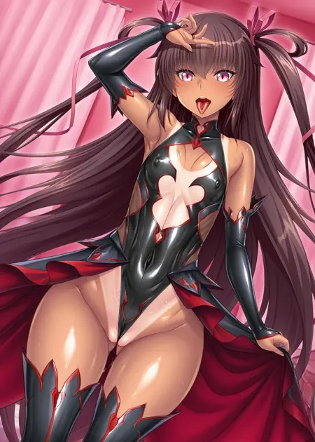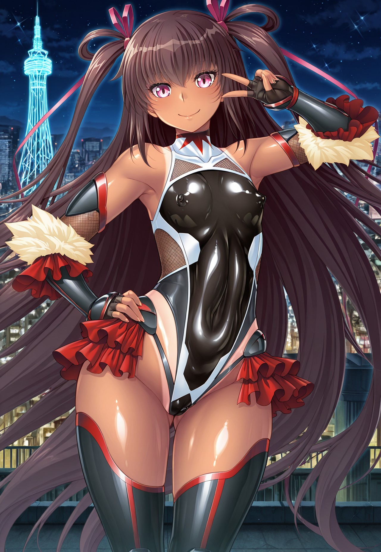 标签:闪亮肌肤,闪亮衣物,深色肌肤,深色皮肤女性,古铜色,晒痕,水风美月,粉红色眼睛,小胸,超长发,棕色头发,两侧高束,双马尾,发带,一体式古铜色