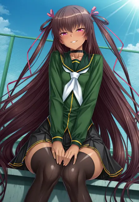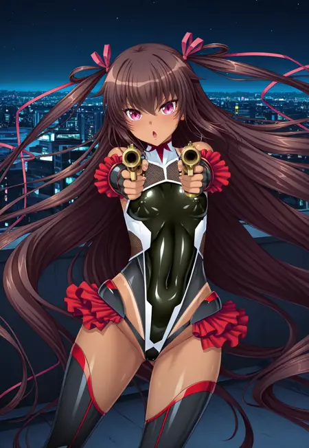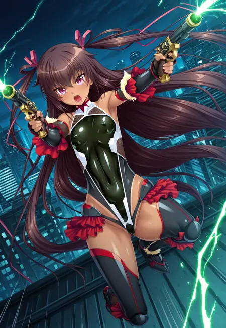 标签:闪亮肌肤,闪亮衣物,深色肌肤,深色皮肤女性,古铜色,晒痕,水风美月,粉红色眼睛,小胸,超长发,棕色头发,两侧高束,双马尾,发带,一体式古铜色