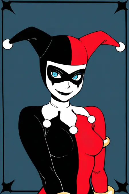 | 학습된 단어 | btas_hq, 1girl, solo, jester cap, mask, domino mask, blue eyes, white face paint, black lips, red and black bodysuit, medium breast, gloves, bracelet, closed mouth, smile,upper body복사됨! : Harleybtas,1girl,solo,twintails,short hair,blonde hair,blue eyes,choker,black lips,medium breast,upper body, night, brown jacket,long sleeves, trench coat,복사됨! official style,style parody복사됨! red dress,short sleeves복사됨! |