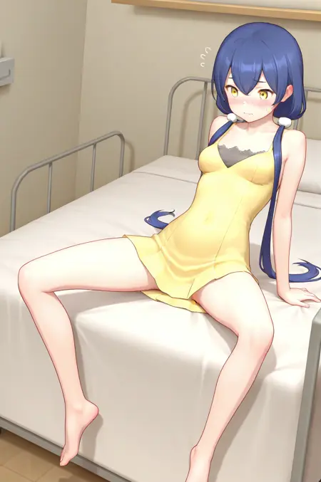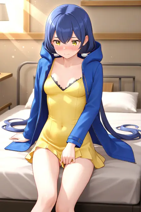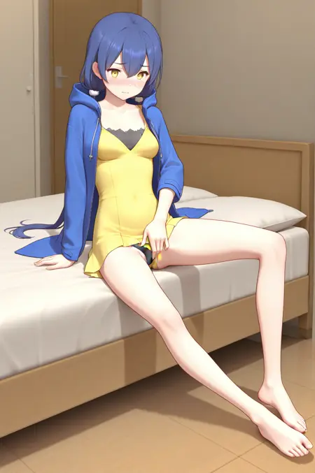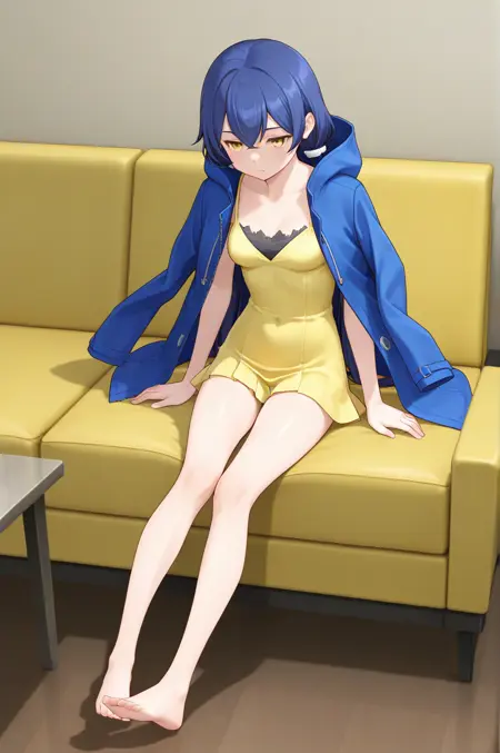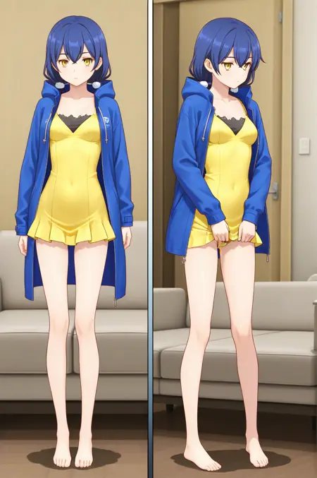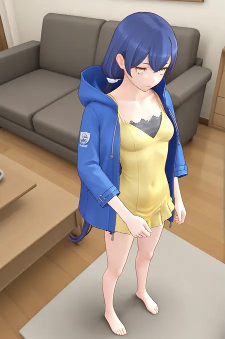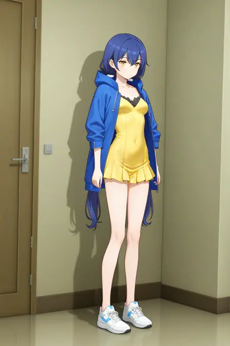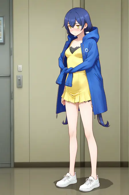 dsc-erika, 黄色い目, 青い髪, 低いツインテール, 目の間に髪