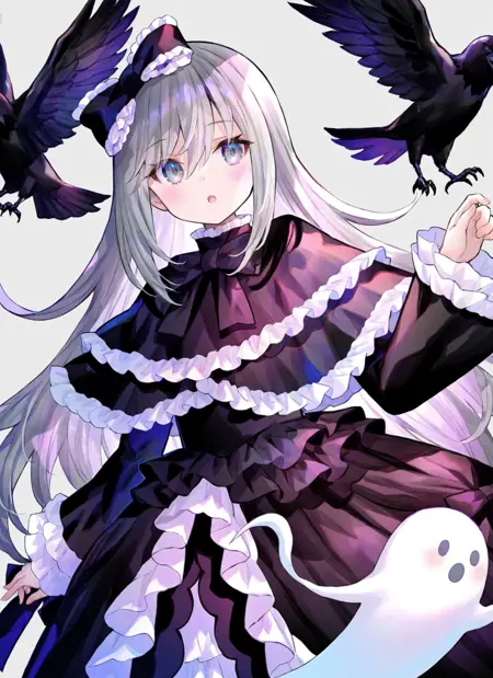 Tags (character): ghost belle & haunted mansion,grey hair(or black hair),bags under eyes,