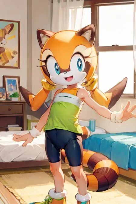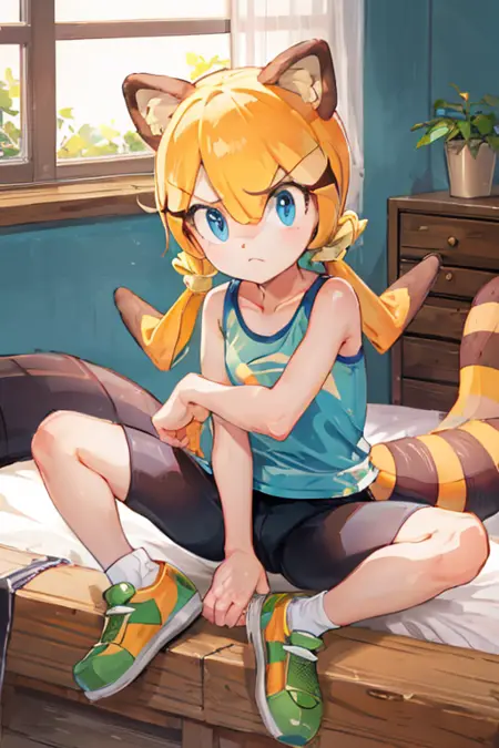 그녀를 소환하려면 **sthmarine**을 사용하고, 외형을 구성하려면 **몸 털, 너구리 귀, 너구리 꼬리, 파란 눈, 자전거 반바지**를 사용하세요.
