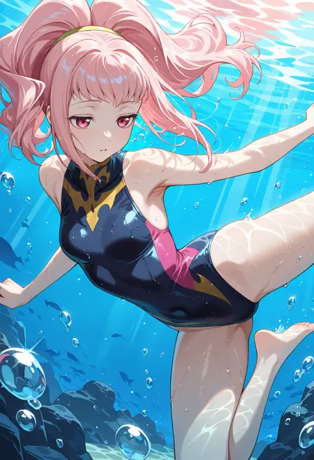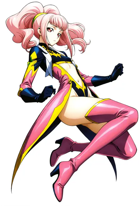 衣装2: 1人の少女、太ももまでの靴下、ピンクの髪、へそ、ピンクの目、レオタード、手袋、ヘアバンド、ポニーテール、ハイヒール、腹筋、ブーツ、短い髪、ツインテール、服の切り抜き、ハイレグ、太ももまであるブーツ、ハイレグレオタード、赤い目、靴、胸、中央開き、小さな胸、ピンクの太ももまでの靴下、長い髪