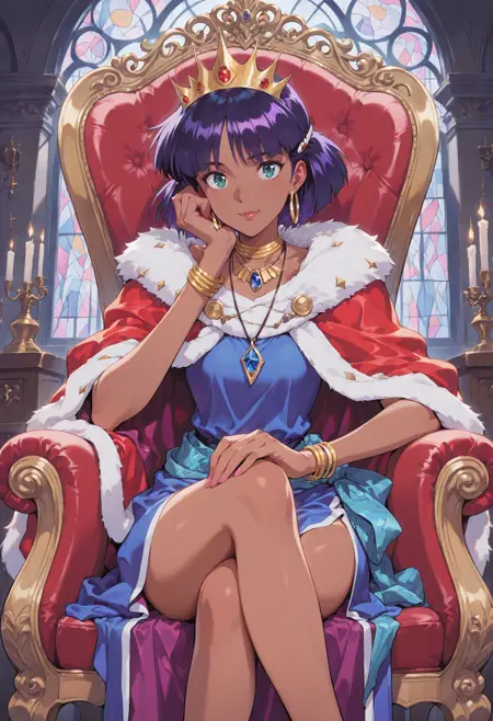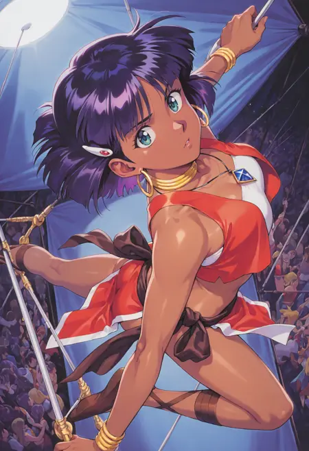 의상 초안: 1girl, 보석, 목걸이, 띠, 어깨대, 뱅도, 단발, 보라색 머리, 조끼, 골반 커튼, 팔찌, 검은 피부 여자, 검은 피부, 귀걸이, 복부, 목걸이, 머리 장식, 머리핀, 녹색 눈, 십자 끈 신발, 배꼽, 펜던트, 밥컷, 파란 눈, 발목 끈 신발, 샌들, 어깨 노출, 고리 귀걸이