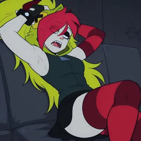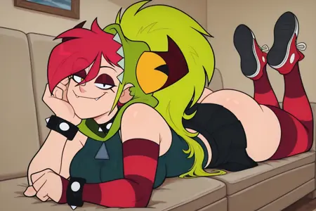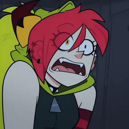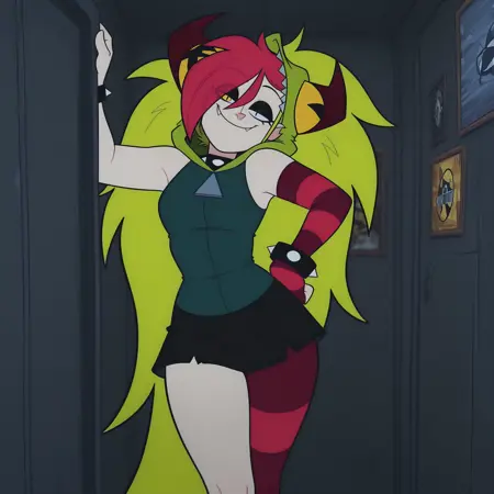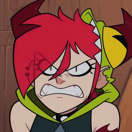 『ヴィランナス』の漫画キャラクター、クレイジーで面白いチック。複雑なデザインのため生成がやや難しい可能性がある—モデルにすべての要素を含めるには追加のロールが必要だが、一般には問題なく動作するはず。