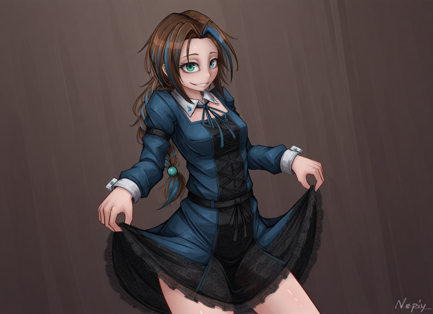 nephy,多彩的头发,棕色头发,虹膜异色症,绿色眼睛,蓝色眼睛,蓝色头发