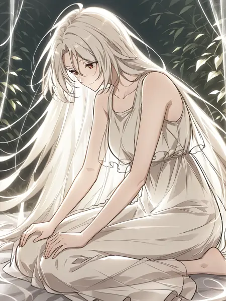 1girl, solo, very long hair, white hair, straight hair, parted bangs, hair between eyes, red brown eyes,