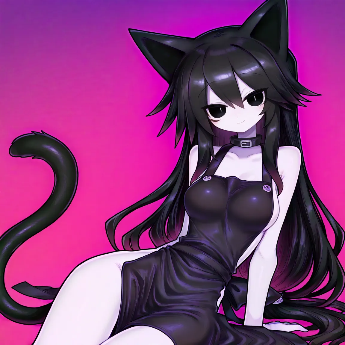 추천 - 고양이 귀, 긴 머리, 검은 머리, 검은 눈, 하얀 피부, 고양이 꼬리