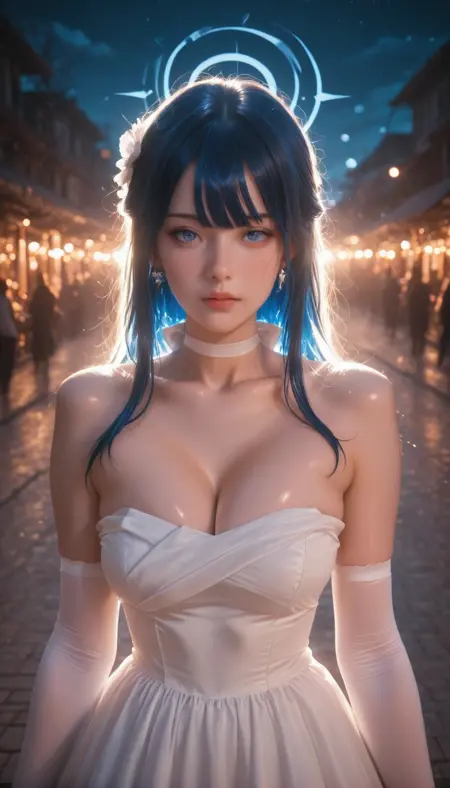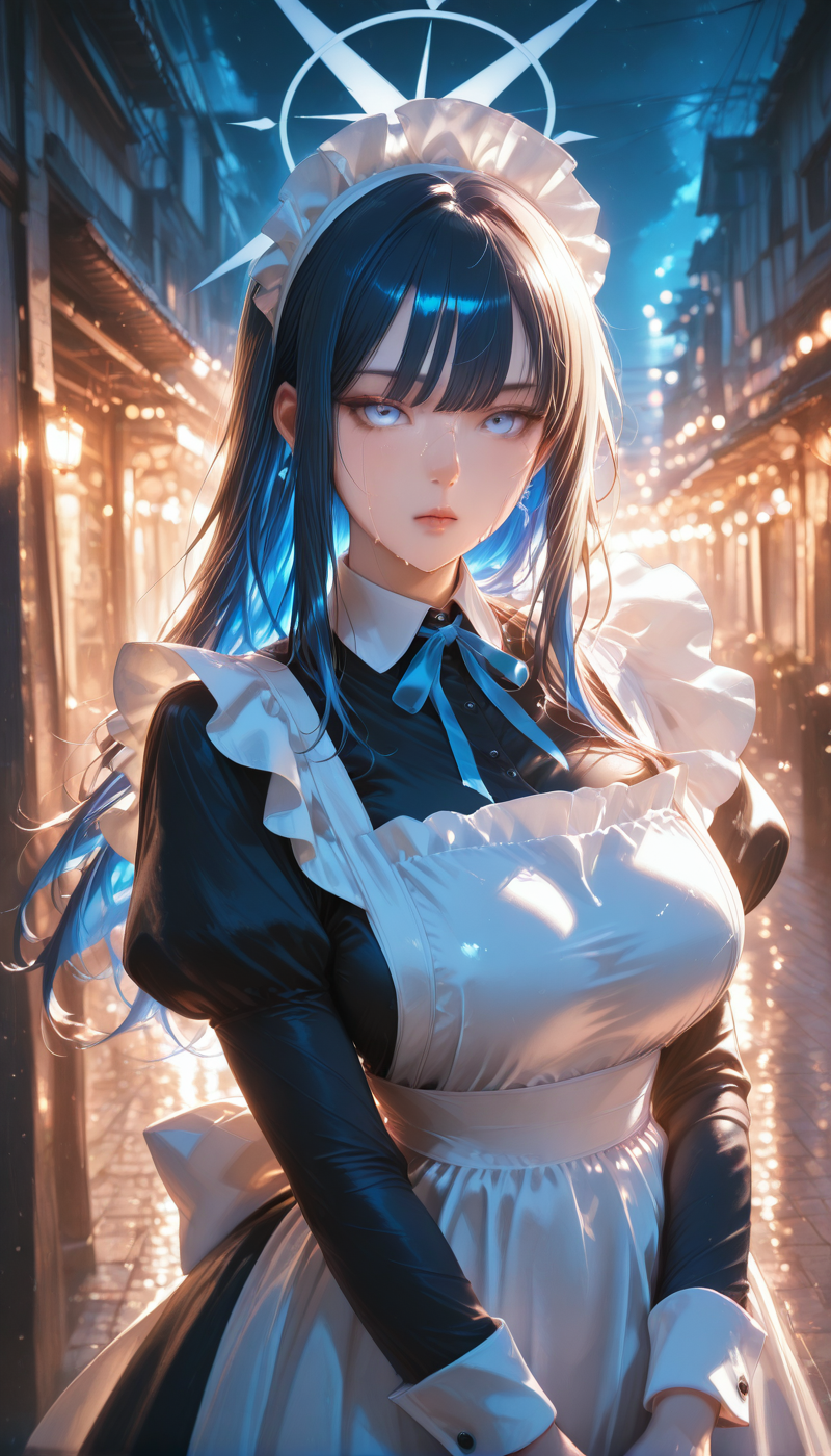 BA_JSaori、青い目、大きい胸、黒い髪、青い髪、多色髪、二色髪、ハロー、色付き内毛、青いハロー、濃い青い髪、