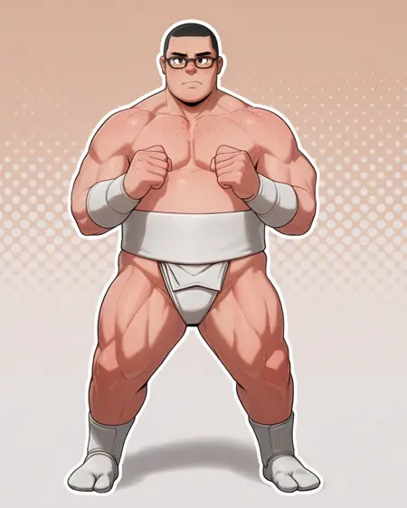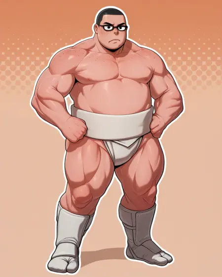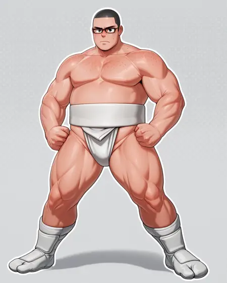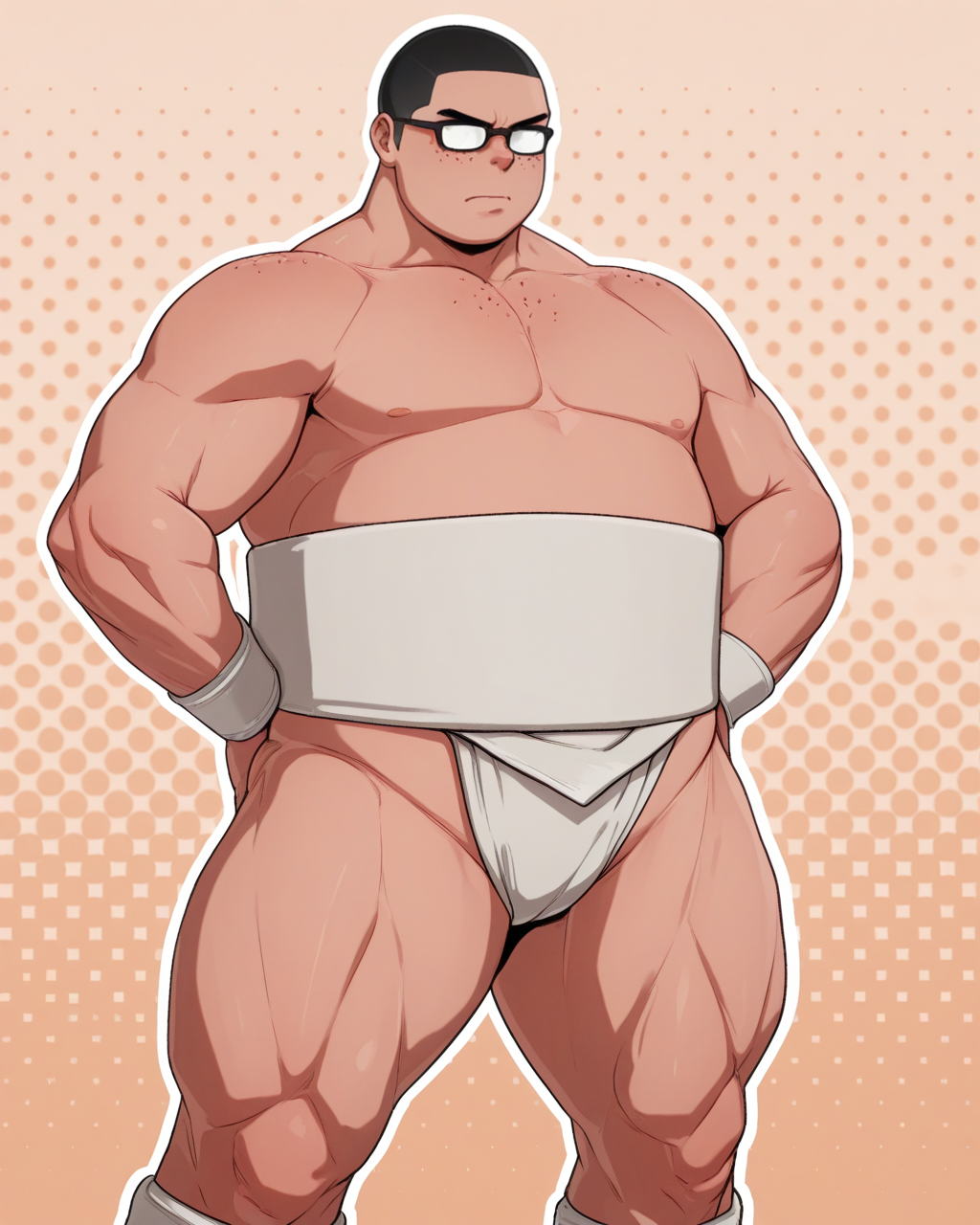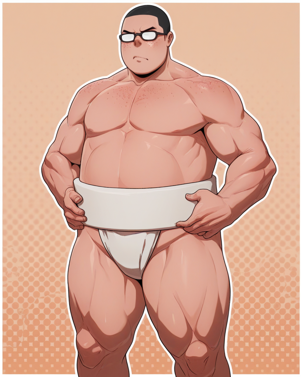 Trigger Words: yukisanadaill, buzz cut, black hair, chubby man, muscular man, glasses, freckles, sumo, wrestler, solo, short hair, black eyes,