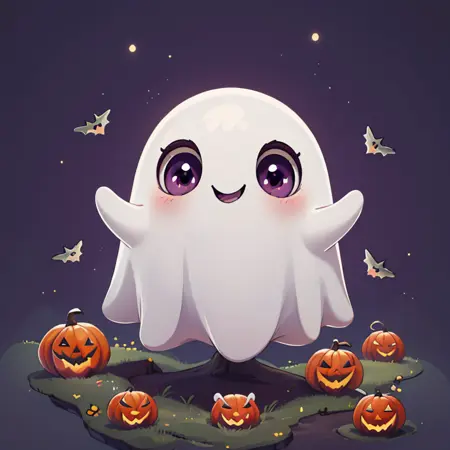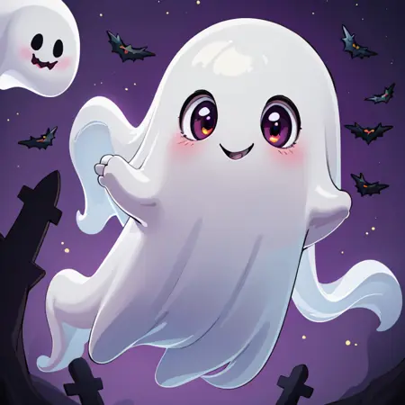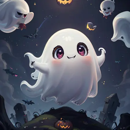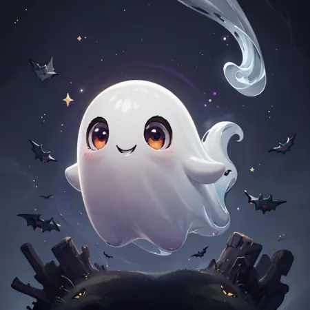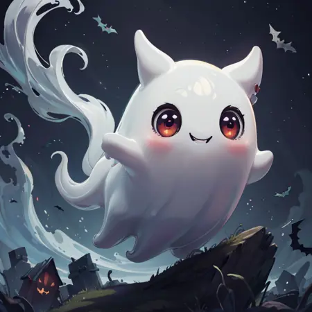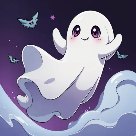 Just a simple sheet ghost with a long tail and sometimes ears.