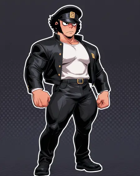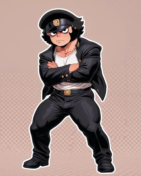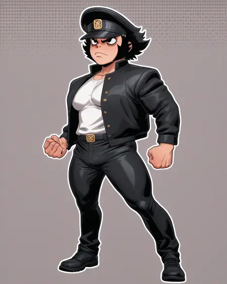 jubenamimaruill, jube namimaru, black hair, black leather cap, male, shortstack, delinquent, black eyes,
