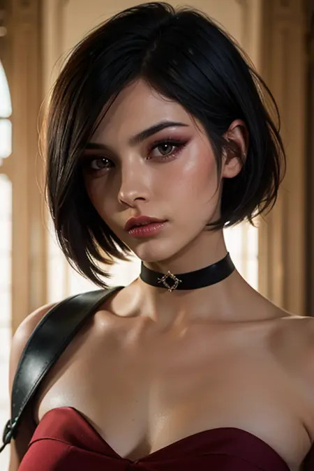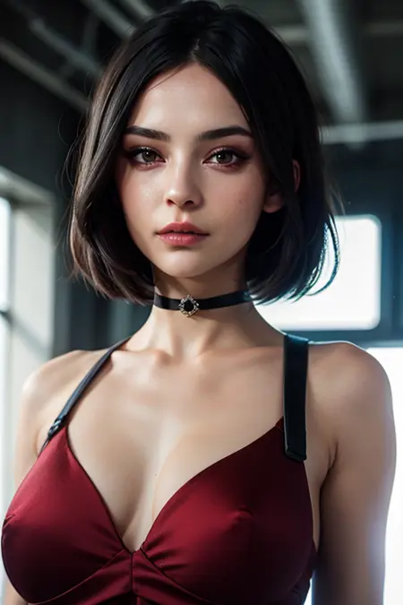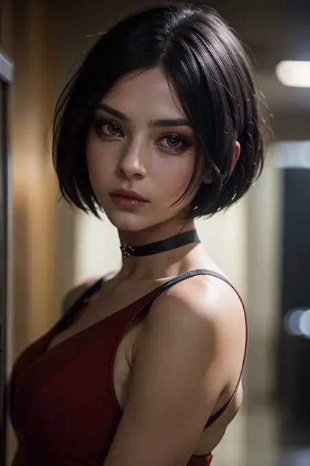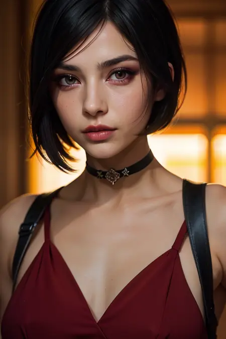 提示词:一幅超高清、色彩丰富、细节精致的肖像,24岁女孩,面部细节丰富,黑色短发,黑色眼睛,妆容,红色连衣裙,领口,右侧裙摆,项圈,史诗级角色构图。alessio albi, nina masic,锐利对焦,自然光线,次表面散射,f2,35mm