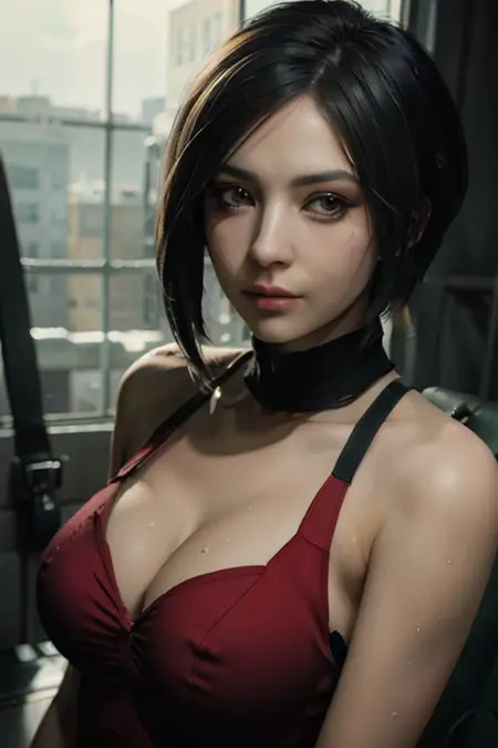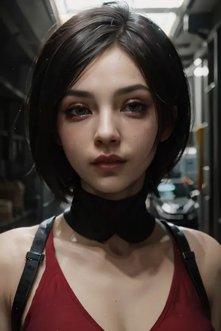 提示词:一幅超高清、色彩丰富、细节精致的肖像,24岁女孩,面部细节丰富,黑色短发,黑色眼睛,妆容,红色连衣裙,领口,右侧裙摆,项圈,史诗级角色构图。alessio albi, nina masic,锐利对焦,自然光线,次表面散射,f2,35mm