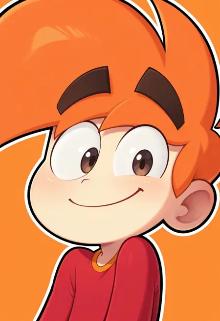 LS Mark, 1boy, solo, orange hair, thick eyebrows, black eyes